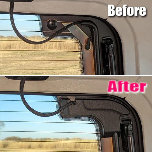 剥き出しになっているリアウィンドウヒーターのケーブルをスタイリッシュにカバーし